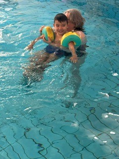 Durch die wöchentliche Schwimmtherapie ist Julian ausgeglichener und zufriedener geworden.